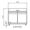 48.25" wide two-section mega top prep table with 12 cu. ft. capacity