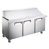The SMP 70" mega top sandwich prep refrigerator includes 30 pans, and a full length 8" cutting board included standard — stainless steel construction for long-lasting durability and easy cleaning. The 3/4 HP refrigeration system will keep your food in the safe zone while the self-closing doors and insulated roll top lock the cold air in 18 cu. ft. of storage offers plenty of room for storage and 3 adjustable 90 lb. shelves allow you to organize optimally.