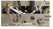 The terminal block is located inside the back cover. Pass the cable strain relief and connect the wires to the terminals L1 (brown wire), L2 (blue wire) & Ground (yellow and green wire). Replace the top & back panels being careful not to pinch or kink any wires or hoses. There should be sufficient cable length to permit the machine to be pulled out for service.