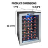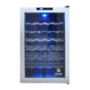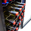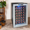 This wine cooler is crafted with a silver seamless pvc exterior, glass door with recessed handle and pull-out wire interior racking