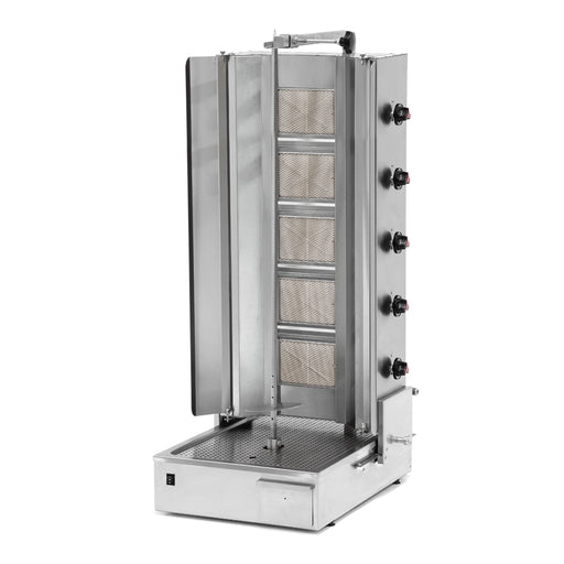 Pegasus S5G Standard Gas Gyro Machine 1 Column, 5 Burners, 59,712 BTU, Stainless Steel, Bottom Motor