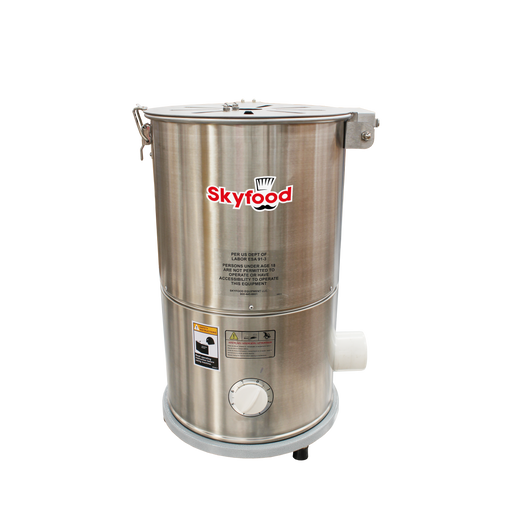 • Skyfood DB-6 Potato Peeler 12 lb Capacity, Countertop, Stainless Steel, Safety Switch, Timer, 159 lb/hr