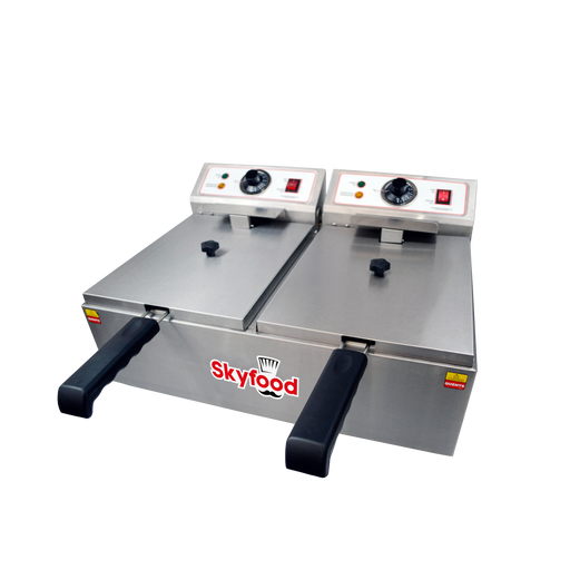 • Skyfood FED-20-N Electric Fryer Countertop, Split Pot, 2 x 10 lb Capacity, Stainless Steel, 392°F Max Temp