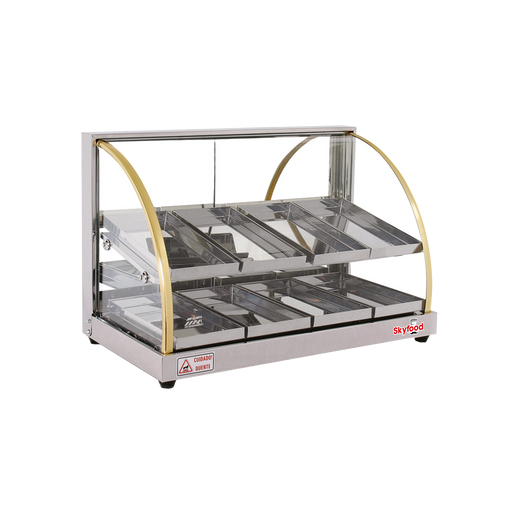 The Skyfood FWDC2-43-8P Food Warmer Display Case is a countertop model built to combine food-safe heating with maximum merchandising visibility. Wi...