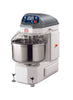 The Mecnosud SP100 spiral dough mixer is designed for pizza shops, bakeries, and restaurants that need dependable, high-volume dough production in a compact footprint. Manufactured in Italy, it includes a 160-liter stainless steel bowl and can process up to 145.5 pounds of flour per batch at 55 percent hydration. Two independent motors, dual hook speeds, and a trapezoidal belt drive work together to ensure consistent dough quality during repeated production cycles.