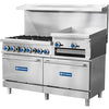 The Standard Range commercial gas range is everything you need to streamline cooking operations in your Kitchen. It features 30,000 BTU/hr burners that are operated independently so you can simultaneously execute multiple cooking tasks. Each burner has a heavy duty cast iron grate that conveniently supports your fry pans, sauce pans, and other commercial cookware. With a 200F to 500F adjustable temperature range, you have enough leeway to accommodate any recipe in your oven - whether you are looking to bake a cake or roast a chicken.