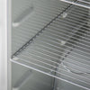 Two adjustable, heavy-duty wire shelves, one per section/door, accommodate full-size sheet pans