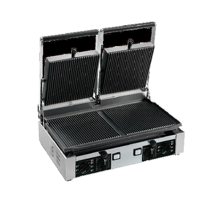 Univex PPRESS2R 19.6" x 10" Panini Press Double Electric, Ribbed Cast Iron Plates, Manual Controls
