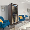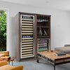 Shelves are removable to fit a medium or tall wine cooler on this singular unit
