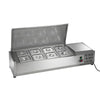 | Pan Capacity | (8) 1/6-size, 6" deep stainless steel pans with covers |