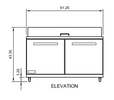 61.25" wide two-section mega top sandwich/salad prep table with 15.5 cu. ft. capacity