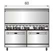 60” combination ranges standard with a 24” griddle top with 6 burners