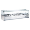 Keep salad, condiments, toppings, and other food items cold on this six pan countertop salad bar. This commercial refrigerated salad bar is perfect for pizza shops, restaurants, and food service establishments that serve a variety of cold salads. A self-contained unit, our salad bar refrigerator maximizes energy consumption and consistently maintains your toppings within the 33°F to 41°F temperature range. A digital temperature controller makes it super easy for your staff to adjust the temperature, while an automatic defrosts feature increases the efficiency of the unit.