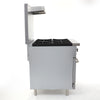 The gas range oven for cooking is made of stainless steel front, sides, back riser, lift-off high shelf with 6” stainless steel adjustable legs