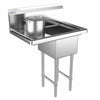 Wash pots and pans or prep food with this Prepline XS1C-1416-L 28.5" commercial stainless steel one compartment sink with left drainboard. Featuring a 14"L x 16"D bowl and left drainboard, this Prepline sink includes backsplash, rolled edges, adjustable feet under 16GA legs, pre-drilled faucet holes and comes with basket and drain. Prepline sinks are manufactured with heavy duty 304 stainless steel for a lifetime of durability in even the harshest commercial kitchens.